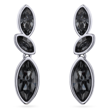 Изготовлено из ювелирного сплава на основе латуни с гальваническим покрытием родием. Изделие украшают кристаллы SW темно-серого цвета. Длина серьги 3.5см. Застежка-гвоздики.