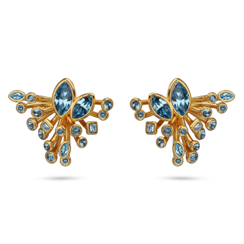 Изготовлено из ювелирного сплава на основе латуни с гальваническим покрытием золотом. Изделие украшают кристаллы SW цвета аквамарин. Размер серьги 3х2.5см. Застежка-гвоздики.