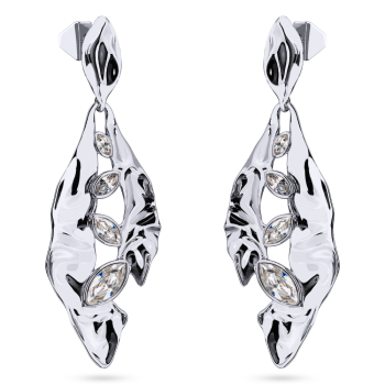 Изготовлено из ювелирного сплава на основе латуни с гальваническим покрытием родием. Изделие украшают кристаллы SW белого цвета. Размер серьги 9.5х3.5см. Застежка-гвоздики.