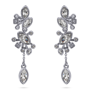 Изготовлено из ювелирного сплава на основе латуни с гальваническим покрытием родием. Изделие украшают кристаллы SW белого цвета. Размер серьги 5.5х1.5см. Застежка-гвоздики.