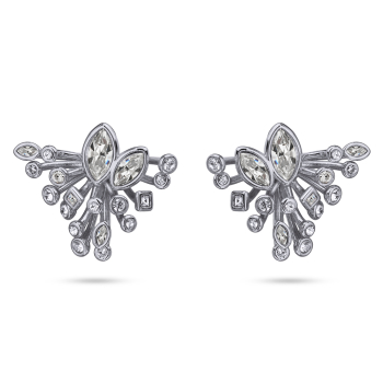 Изготовлено из ювелирного сплава на основе латуни с гальваническим покрытием родием. Изделие украшают кристаллы SW белого цвета. Размер серьги 3х2.5см. Застежка-гвоздики.