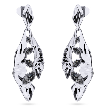 Изготовлено из ювелирного сплава на основе латуни с гальваническим покрытием родием. Изделие украшают кристаллы SW темно-серого цвета. Размер серьги 9.5х3.5см. Застежка-гвоздики.