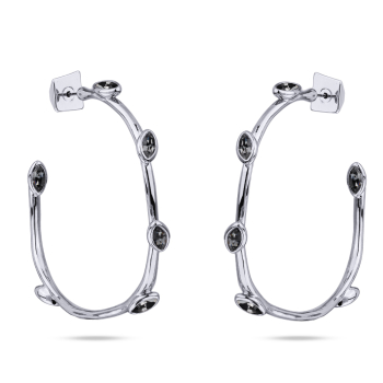 Изготовлено из ювелирного сплава на основе латуни с гальваническим покрытием родием. Изделие украшают кристаллы SW темно-серого цвета. Диаметр серьги 5см. Застежка-гвоздики.