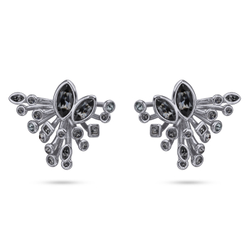 Изготовлено из ювелирного сплава на основе латуни с гальваническим покрытием родием. Изделие украшают кристаллы SW темно-серого цвета. Размер серьги 3х2.5см. Застежка-гвоздики.