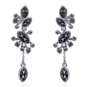 Серьги Эйва (кристаллы SW темно-серые; покрытие родий), Есть комплект