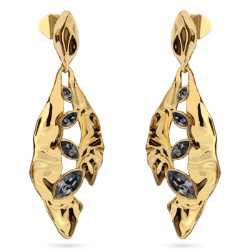 Изготовлено из ювелирного сплава на основе латуни с гальваническим покрытием золотом. Изделие украшают кристаллы SW темно-серого цвета. Размер серьги 9.5х3.5см. Застежка-гвоздики.