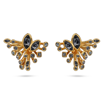 Изготовлено из ювелирного сплава на основе латуни с гальваническим покрытием золотом. Изделие украшают кристаллы SW темно-серого цвета. Размер серьги 3х2.5см. Застежка-гвоздики.