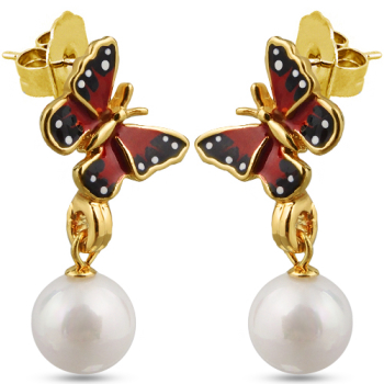 Серьги (эмаль красная, жемчуг белый; покрытие: золото)