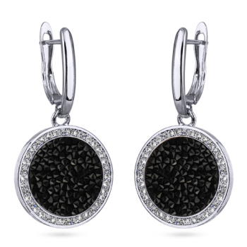 Серьги Галактика (кристаллы SW черные; покрытие родий), Есть комплект
