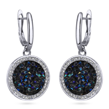 Серьги Галактика (кристаллы SW синие; покрытие родий), Есть комплект