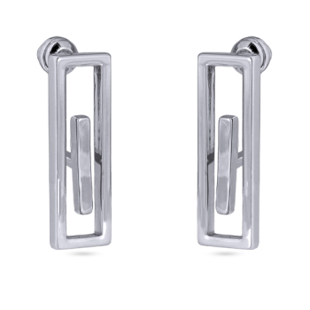 Изготовлено из ювелирного сплава на основе латуни с гальваническим покрытием родием. Размер серьги 2.5х0.8см. Застежка-гвоздики.