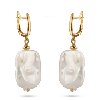 Изготовлено из ювелирного сплава на основе латуни с гальваническим покрытием золотом. Изделие украшает жемчуг белого цвета. Длина серьги 4см. Английская застежка.