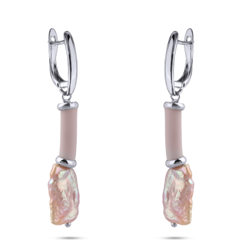 Изготовлено из ювелирного сплава на основе латуни с гальваническим покрытием родием. Изделие украшают барочный жемчуг розового цвета и розовый каучуковый шнурок. Длина см. Английская застежка. *Цвет и форма жемчужин может отличаться от изображенной на фот
