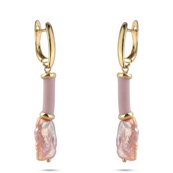 Изготовлено из ювелирного сплава на основе латуни с гальваническим покрытием золотом. Изделие украшают барочный жемчуг розового цвета и розовый каучуковый шнурок. Длина см. Английская застежка. *Цвет и форма жемчужин может отличаться от изображенной на фо