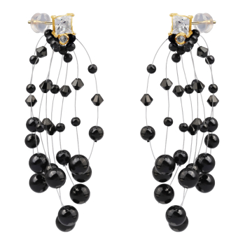 Изготовлено из ювелирного сплава на основе латуни с гальваническим покрытием золотом. Изделие украшают черные жемчуг Майорка диаметром 3-7мм и кристаллы SW размером 7х7мм. Длина серьги 7, 5см. Застежка-гвоздики.