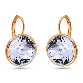 Изготовлено из ювелирного сплава на основе латуни с гальваническим покрытием золотом. Изделие украшают кристаллы SW белого цвета. Размер серьги 2.5х1.5см. Французский замок с пружинной застежкой.