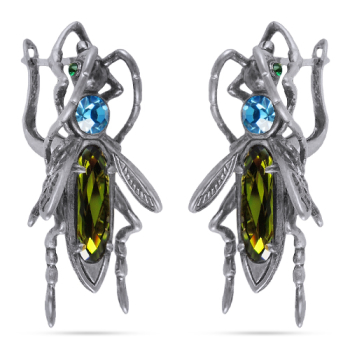 Изготовлено из ювелирного сплава на основе латуни с гальваническим покрытием античным серебром. Изделие украшают кристаллы SW зеленого и голубого цвета. Английский замок. Размер украшения 4х1.5см.