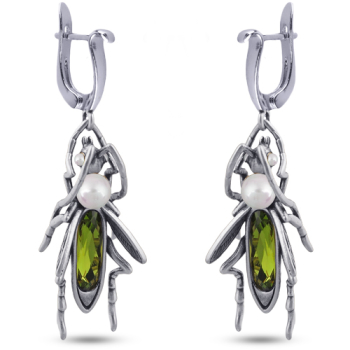 Изготовлено из ювелирного сплава на основе латуни с гальваническим покрытием античным серебром. Изделие украшают кристаллы SW зеленого цвета и белый майорский жемчуг. Английский замок. Размер украшения 5.5х2см.