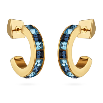 Серьги Квадро (кристаллы SW джинс, аквамарин; покрытие золото), Есть комплект
