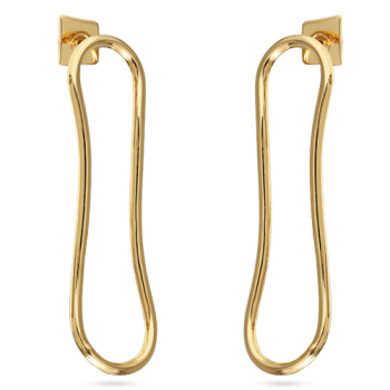Изготовлено из ювелирного сплава на основе латуни с гальваническим покрытием золотом. Размер серьги 5, 5х1, 5см. Застежка-гвоздики.