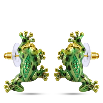 Серьги Лягушка (эмаль зеленая; покрытие золото), Есть комплект
