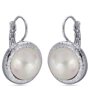 Изготовлено из ювелирного сплава на основе латуни с гальваническим покрытием родием. Изделие украшает майорский жемчуг белого цвета диаметром 12мм. Французский замок. Длина 2.5см.