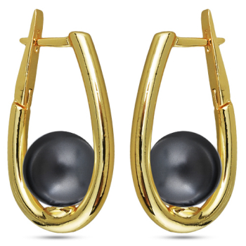 Изготовлено из ювелирного сплава на основе латуни с гальваническим покрытием золотом. Изделие украшает майорский круглый жемчуг черного матового цвета диаметром 12мм. Английский замок. Длина 3, 5см.