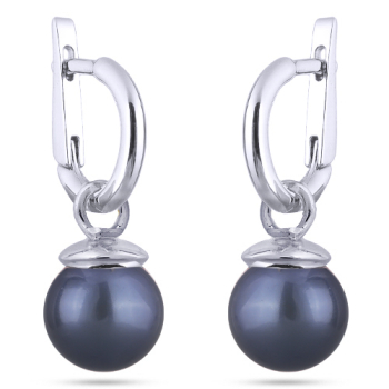 Изготовлено из ювелирного сплава на основе латуни с гальваническим покрытием родием. Изделие украшают майорский круглый жемчуг черничного цвета диаметром 12мм. Длина серьги 3см. Английский замок.