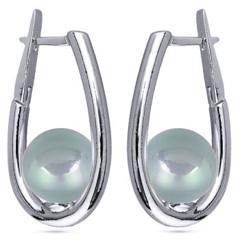 Изготовлено из ювелирного сплава на основе латуни с гальваническим покрытием родием. Изделие украшает майорский круглый жемчуг голубого цвета диаметром 12мм. Английский замок. Длина 3, 5см.