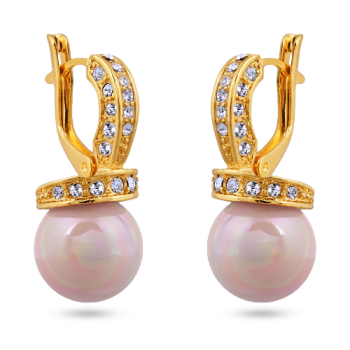 Изготовлено из ювелирного сплава на основе латуни с гальваническим покрытием золотом. Изделие украшает майорский круглый жемчуг холодно-розового цвета диаметром 12мм и кубики циркония. Английский замок. Длина серьги 3см.