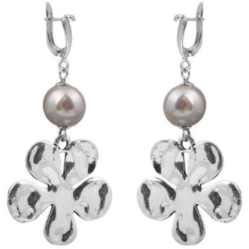 Изготовлено из ювелирного сплава на основе латуни с гальваническим покрытием родием. Изделие украшает круглый майорский жемчуг цвета шампань диаметром 12мм. Длина серьги 6.5см. Английская застежка.