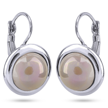 Изготовлено из ювелирного сплава на основе латуни с гальваническим покрытием родием. Изделие украшает майорский жемчуг цвета шампань диаметром 12мм. Французский замок. Длина 2.5см.