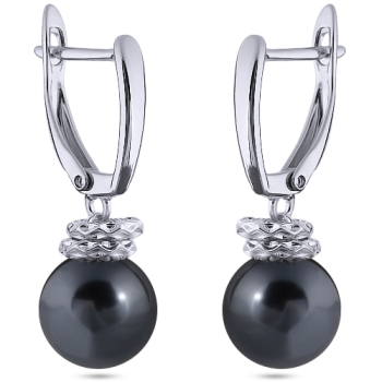 Изготовлено из ювелирного сплава на основе латуни с гальваническим покрытием родием. Изделие украшает майорский круглый жемчуг темно-серого цвета диаметром 12мм. Английский замок. Длина 3см.