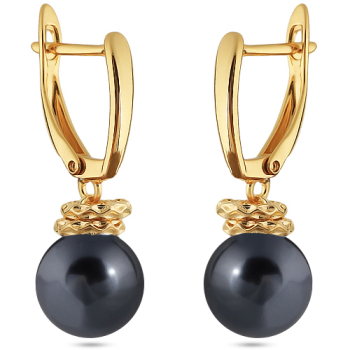 Изготовлено из ювелирного сплава на основе латуни с гальваническим покрытием золотом. Изделие украшает майорский круглый жемчуг темно-серого цвета диаметром 12мм. Английский замок. Длина 3см.
