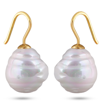 Изготовлено из ювелирного сплава на основе латуни с гальваническим покрытием золотом. Изделие украшает майорский барочный жемчуг белого цвета диаметром 14мм. Замок в форме крючка. Длина 3см.
