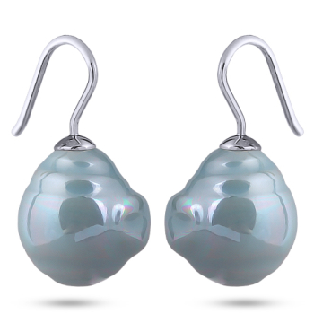 Серьги (Майорка 14мм барочная голубая; покрытие родий), Есть комплект