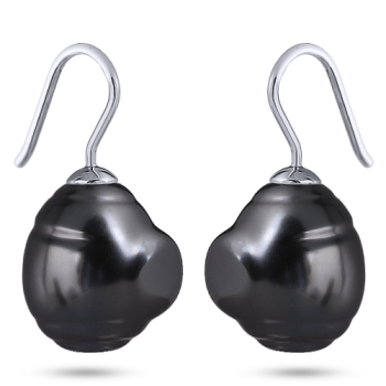 Серьги (Майорка 14мм барочная темно-серая; покрытие родий), Есть комплект