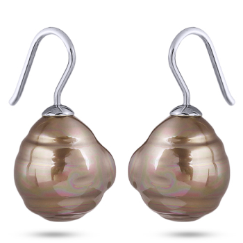Изготовлено из ювелирного сплава на основе латуни с гальваническим покрытием родием. Изделие украшает майорский барочный жемчуг золотистого цвета диаметром 14мм. Замок в форме крючка. Длина 3см.