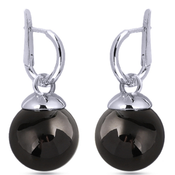 Изготовлено из ювелирного сплава на основе латуни с гальваническим покрытием родием. Изделие украшает майорский круглый жемчуг черного цвета диаметром 14мм. Английский замок. Длина 3.2см.