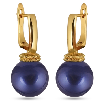 Изготовлено из ювелирного сплава на основе латуни с гальваническим покрытием золотом. Изделие украшает круглый жемчуг Майорка черничного цвета диаметром 14мм. Длина серьги 3.5см. Английская застежка.