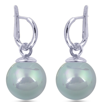 Изготовлено из ювелирного сплава на основе латуни с гальваническим покрытием родием. Изделие украшают майорский круглый жемчуг голубого цвета диаметром 14мм. Английский замок. Длина 3.2см.