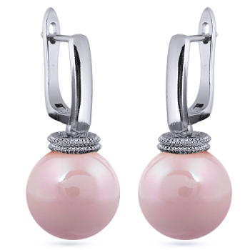 Изготовлено из ювелирного сплава на основе латуни с гальваническим покрытием родием. Изделие украшает круглый жемчуг Майорка холодно-розового цвета диаметром 14мм. Длина серьги 3.5см. Английская застежка.