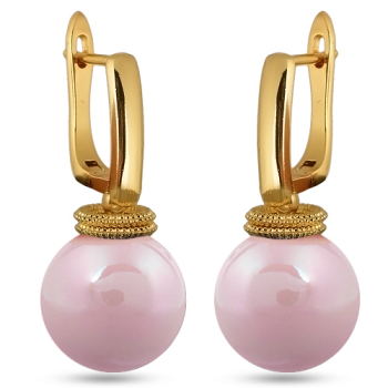 Изготовлено из ювелирного сплава на основе латуни с гальваническим покрытием золотом. Изделие украшает круглый жемчуг Майорка холодно-розового цвета диаметром 14мм. Длина серьги 3.5см. Английская застежка.