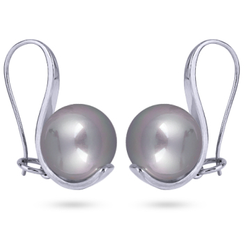 Изготовлено из ювелирного сплава на основе латуни с гальваническим покрытием родием. Изделие украшает майорский круглый жемчуг серо-голубого цвета диаметром 14мм. Длина серьги 3см. Замок-петля.