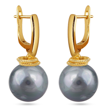 Изготовлено из ювелирного сплава на основе латуни с гальваническим покрытием золотом. Изделие украшает круглый жемчуг Майорка серо-голубого цвета диаметром 14мм. Длина серьги 3.5см. Английская застежка.