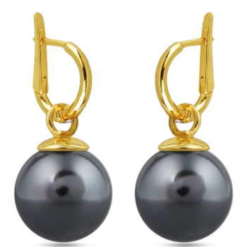 Серьги (Майорка 14мм темно-серая; покрытие золото), Есть комплект