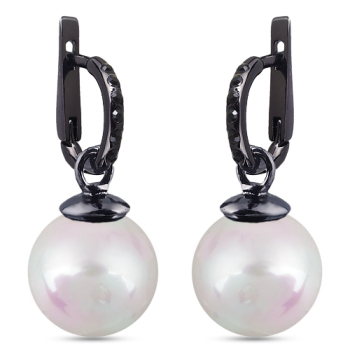 Изготовлено из ювелирного сплава на основе латуни с гальваническим покрытием черным родием. Изделие украшают майорский круглый жемчуг белого цвета диаметром 16мм. Английский замок. Длина 3, 5см.