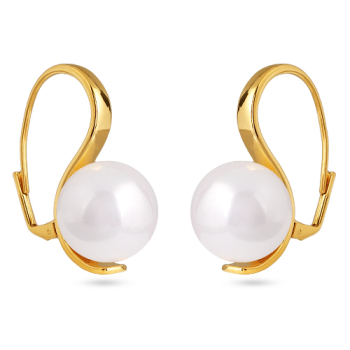 Изготовлено из ювелирного сплава на основе латуни с гальваническим покрытием золотом. Изделие украшает майорский круглый жемчуг белого цвета диаметром 16мм. Французский замок. Длина 3.5см.