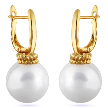 Изготовлено из ювелирного сплава на основе латуни с гальваническим покрытием золотом. Изделие украшает майорский барочный жемчуг белого цвета диаметром 16мм. Длина серьги 3.5см. Английская застежка.