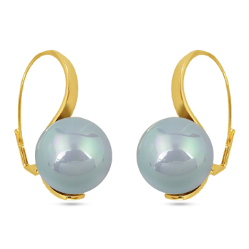 Изготовлено из ювелирного сплава на основе латуни с гальваническим покрытием золотом. Изделие украшает майорский круглый жемчуг голубого цвета диаметром 16мм. Французский замок. Длина 3, 5см.